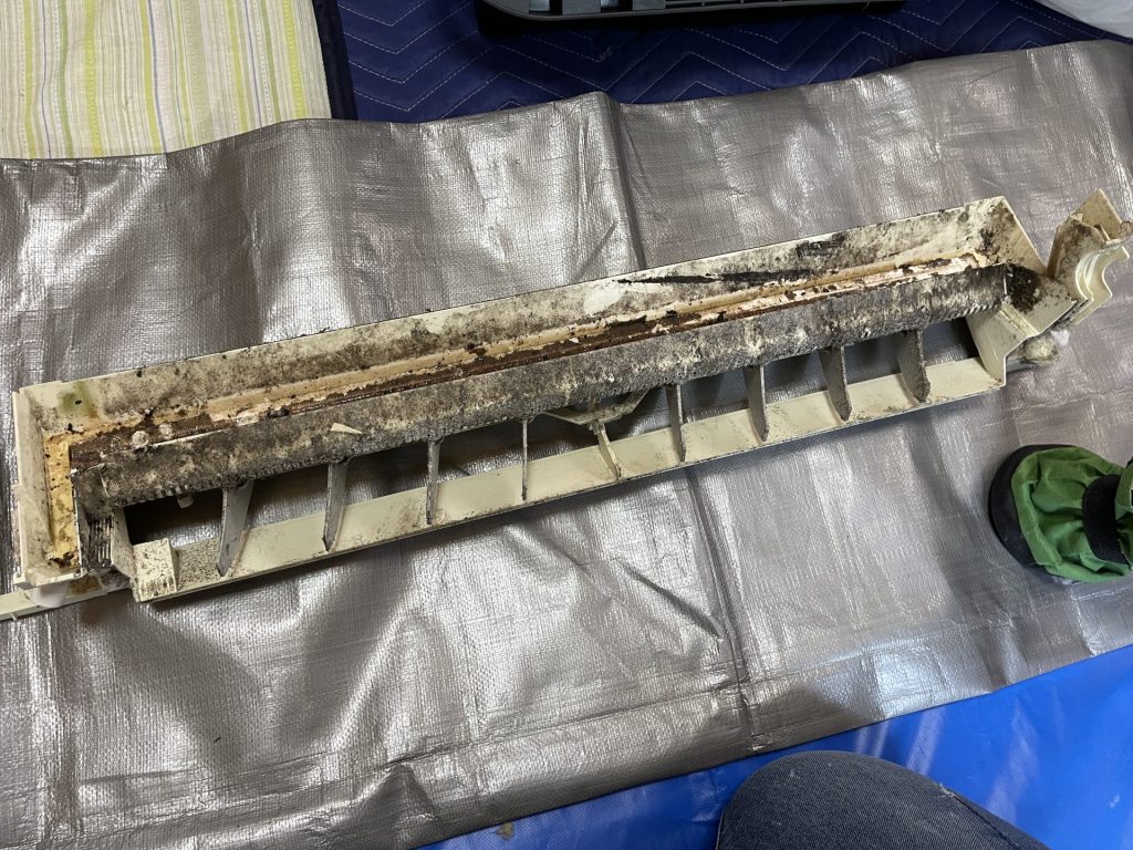 それでも夏場は冷房を使い続けるので、どんどん結露も供給され続けます。結果、栓がしてある側の水も混ざって交換され排水されるので水自体はある程度清潔です(カビの繁殖の助けにはなりますが)。もっと悪い事態は秋に発生します。冷房を使わなくなると結露の供給が止まり、同じ水が残り続け自然蒸発を待つ状態になります。水道水などと違い、消毒もされていない真水なので徐々に水自体が腐っていきます。加えて、近くにカビがあると一気に繁殖してしまいます。つまり、冷房を使ったまま秋に放置しているとその期間にカビが大繁殖してしまいます。