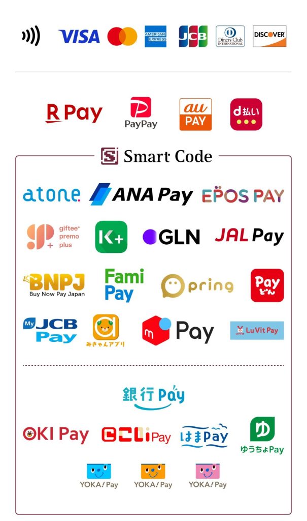現金に加え、下記の決済方法が使用できます。